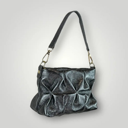 GEMMA - BORSA A MANO IN VERA PELLE LAMINATA - PIOMBO