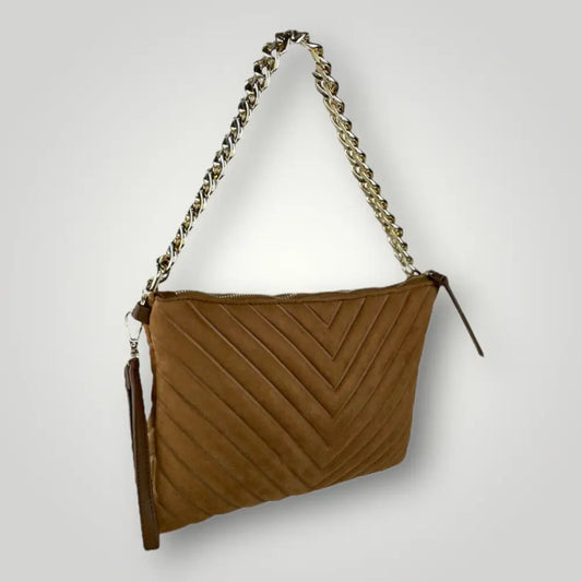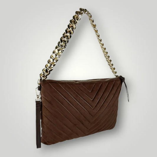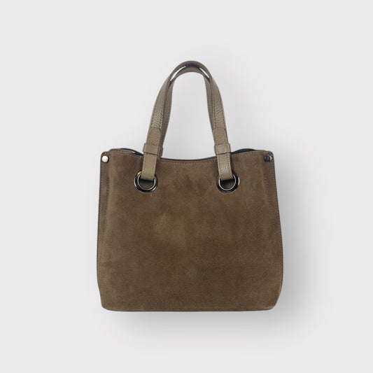 IRIS - BORSA DUE MANICI IN VERA PELLE CAMOSCIO - MARRONE