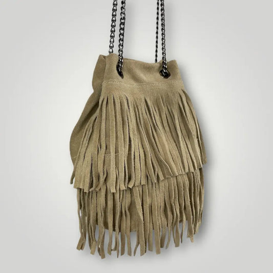 IZAR - BORSA SECCHIELLO IN VERA PELLE CAMOSCIO - BEIGE