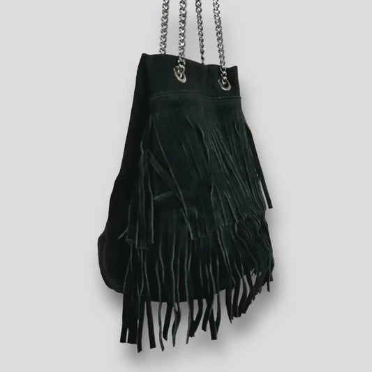 IZAR - BORSA SECCHIELLO IN VERA PELLE CAMOSCIO - NERA