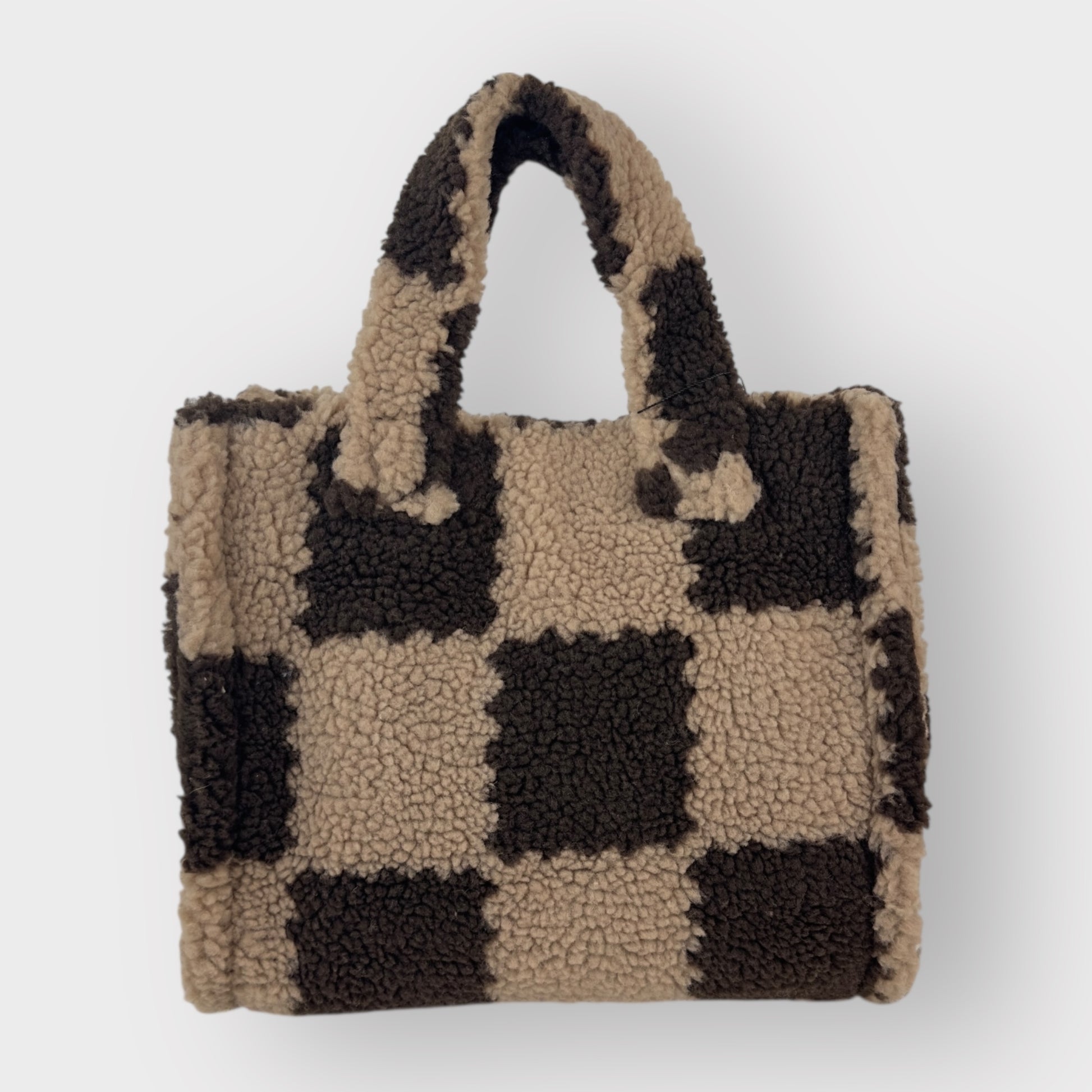 La Deneb è la tote bag in shearling che unisce morbidezza, stile e funzionalità in un’unica silhouette irresistibile. Realizzata con un ricercato motivo a quadri in tessuto effetto peluche, è la compagna ideale per le giornate più fredde, aggiungendo un tocco cozy e contemporaneo a qualsiasi outfit.